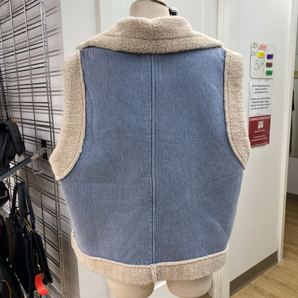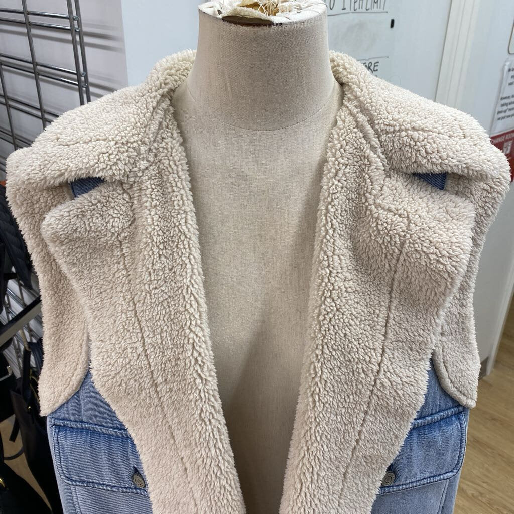 Oat Denim faux shearling vest XL