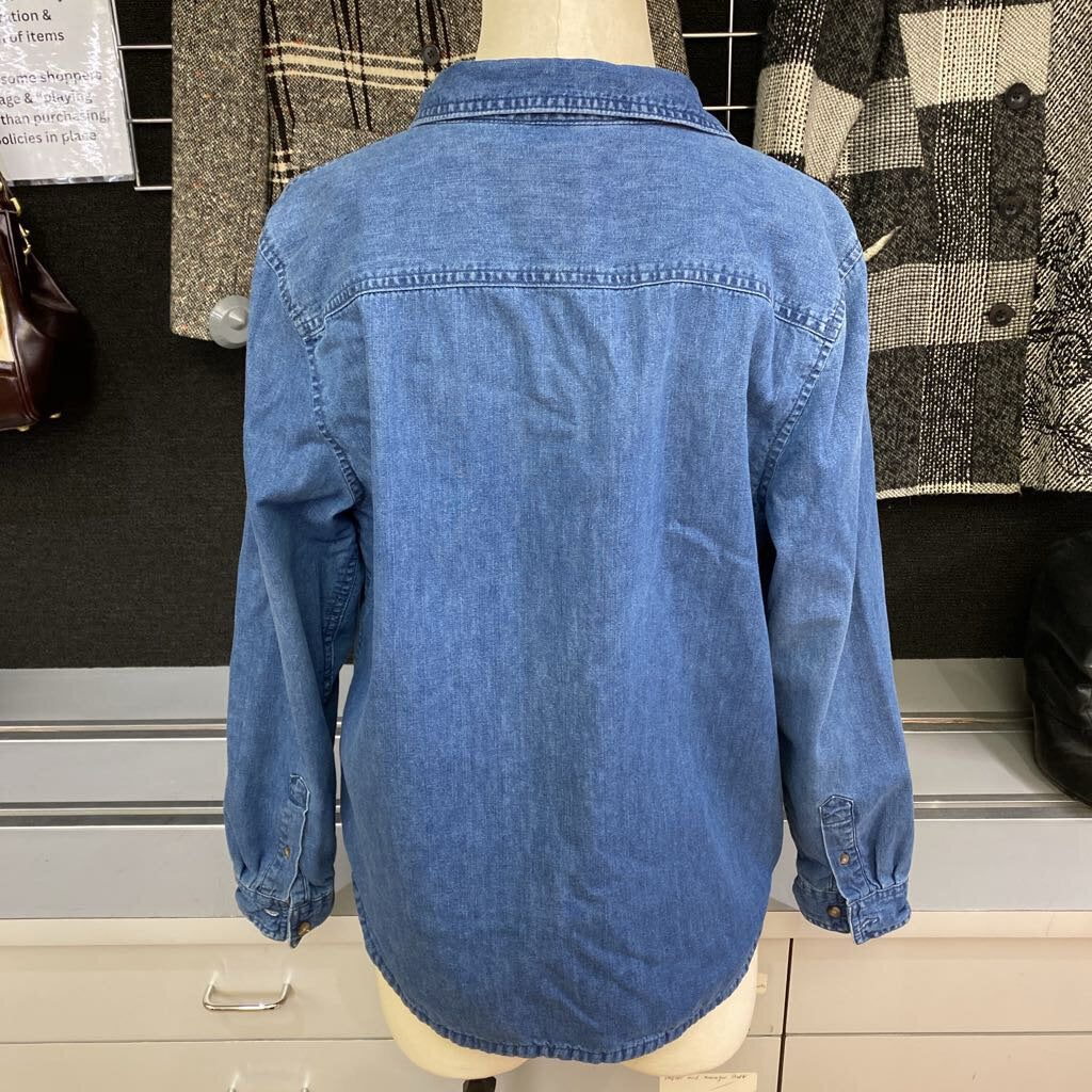 LL Bean plaid lined denim top M